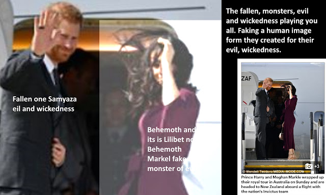 Harry Mountbatten Sussex is Samyaza and other identities. Its fake wife Meghan Markel is played by Amelia Warner fake wife of Jamie Dornan and is two different identities, fallen one's evil beasts, Behemoth and leviathan, but the word is not Leviathan it is Lilibet. Evil monsters, dragons, serpents and other beasts. Samyaza also has taught sorcery, to whom